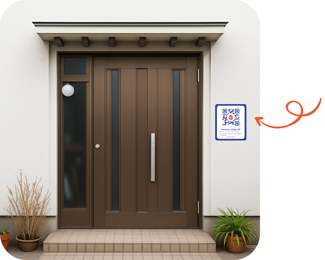 Evita abrir la puerta sin saber quién está afuera. Con solo escanear el código QR, las visitas se comunican de forma segura contigo.